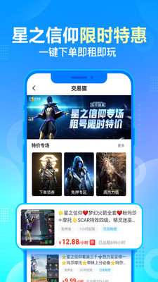 交易猫官方版是知名的游戏账号交易平台,它是属于广州信息技术有限公司旗下的软件,它致力于打造出安全、高效的手机网络游戏交易平台,在这里玩家们可以进行游戏币、游戏道具、账号、资源的交易,并且其交易的内容包含了国内主流的苹果和安卓系统以及360以及91等多个平台,为用户提供了物美价廉的虚拟商品交易服务。此外,我们一直在努力打造出一个健康的手游交易市场,不断地为用户创造出更高的价值,我们本着客户至上的经营理念,不断的完善用户使用体验,优化交易流程,避免了账号交易的安全隐患,努力提升我们的服务质量。而且这是一个十分优质的手机账号交易平台,不收取第三方任何的费用,玩家们可以在这里交易游戏货币道具以及账号,并且业务范围几乎覆盖了国内各大游戏市场,你在应用商店能找到的游戏,只要是能交易的,那么你都能够在这里找到相应的游戏交易信息。此外,该平台采用了支付宝进行交易,方便且快捷,是一个买家卖家都放心的交易平台,有需要的小伙伴赶紧来下载交易猫app哦!