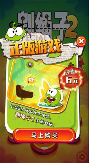 1、全球5亿下载量,益智游戏《割绳子2》火爆开启!