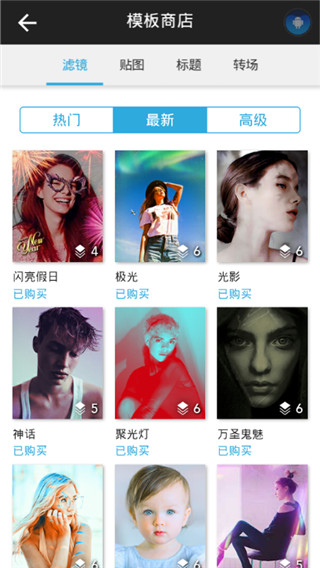 威力酷剪安卓破解版是一款非常强大的手机视频编辑软件,软件内置丰富的视频处理功能,使用它可以轻松在手机上完成视频的剪辑工作。软件支持编辑、捕捉两个功能分类,并且它在视频编辑界面提供了视频剪辑、视频加速、背景音乐添加,特效添加,对比度调整等丰富的功能,可以满足你的很多视频处理需求,并且它可以让大家导入一段视频用来添加标题,文字,用标题来表达视频的内容,同时你还可以为视频添加动听的背景音乐,以便能达到更好的视频效果,而且它还支持添加视频转场等特效,用户可以根据自己的需要来选择使用,同时在威力酷剪软件中还存在着一个模板商店,它提供了很多的素材可以让大家使用,包括滤镜,标题,转场等,在每一个素材类别下还有热门,最新,高级等分类,大家可以直接在视频中添加和使用这些素材,让你的视频创意更佳,同时也能够提高你的创作效率,视频创造时间会大大缩短,是短视频创造的必备软件,本站带来的是安卓破解版,解锁了所有功能和素材,需要的赶快下载吧。