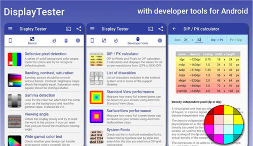 Display Tester汉化破解版是一款非常专业的屏幕检测工具,通过这款软件大家可以快速轻松的测试出你的屏幕是否正常。而且在大家使用手机的时候,可能有时候也会不小心使得手机掉落在地上,虽然大家可能发现手机屏幕上没有裂痕,但是具体的屏幕显示正不正常,有没有坏就很难看出来了,而有了这款专门的测试工具,大家就能够快速的测试出屏幕是否损坏了。该软件支持多种测试功能,包括屏幕触点、颜色,抖动等多种测试功能,可以帮你全方面的测试出你手机屏幕是否正常。而且该软件的测试操作也是非常简单的,对于不懂手机的用户来说,也可以轻松的进行,此外,Display Tester软件中提供了许多的测试手势,包括左右、上下滑动以及触摸等多种测试方法,不同的手势适用于不同的测试,通过这些手势能够帮你准确的完成测试操作,测试完成可以查看到具体的结果,是屏幕检测必备的工具的,需要检测屏幕的朋友赶快下载吧。