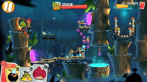 1、愤怒的小鸟2继承了简单有趣的触屏方式进行游戏: