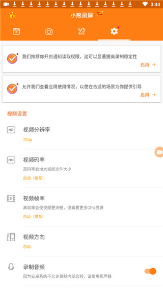 5、小熊录屏可通过悬浮窗或通知栏控制录影;录制过程中可隐藏悬浮窗