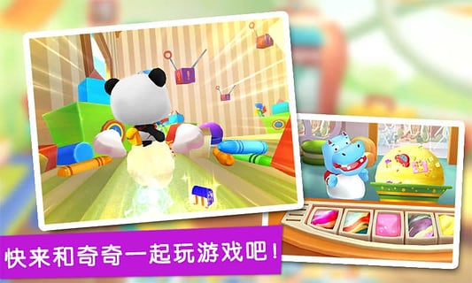 益智互动:跟着卡通动物哼唱英语儿歌,讲童话故事哄睡小猫咪,和熊猫奇奇一起制作美食等。