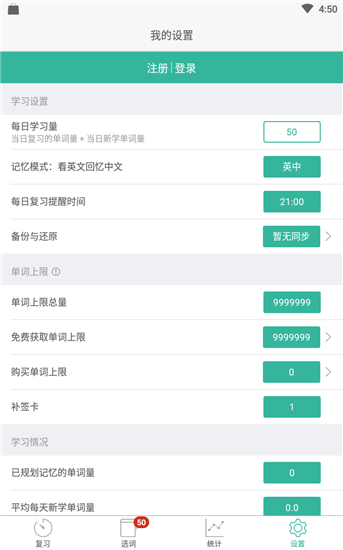 3. 记忆持久度:你可以清楚的看到已学单词的熟知度情况。