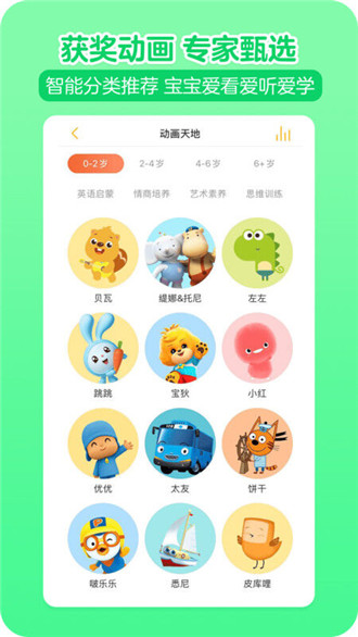 分龄推荐英语、国学、乐律、高情商、好习惯…让宝宝通过优美的旋律,动听的故事学习好的生活习惯和启蒙知识。