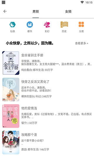 1、网罗海量小说资源,分类精细,包含言情小说、玄幻、奇幻,都市,武侠修真,总裁豪门等各大类型热门小说。