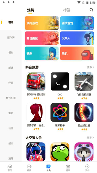 3、进入分类界面,玩家可以根据喜好选择游戏