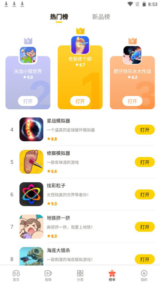 4、进入榜单界面,这里都是近日热门游戏