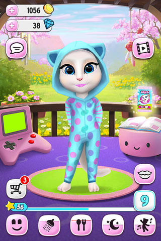 1000多种毛色、发型、服装和露台装饰任你挑选,依据你的喜好为安吉拉宝宝布置一个温馨的家吧,还可以收集超酷的贴纸哦~