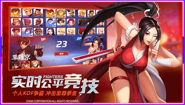 跨服大擂台,实时匹配,真人对决,无数值加成,胜负全靠操作,从任性青铜起步,逐步攀升到至尊拳皇,摘取全服第一荣誉!自选3名格斗家组队,迎战各种打法的对手,硬刚流、POKE牵制流、跑酷流、强控流……土豪和平民在KOF玩法中没有差别!是时候展现真正的技术了
