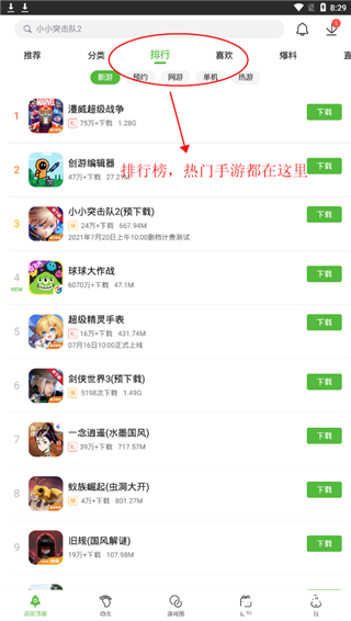 3、在排行榜单,都是点击量超高的游戏,点击喜欢的游戏;