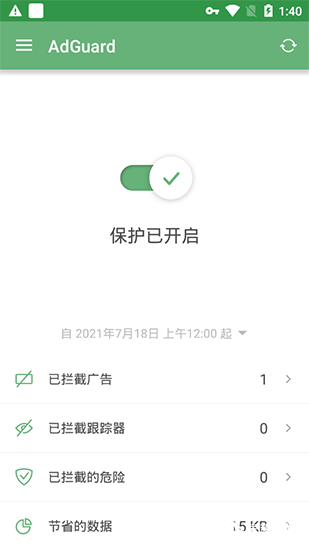 AdGuard高级版,拦截广告避免了广告的载入,也就代表着节省了流量,不再浪费流量在广告上