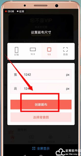 2、可以自定义画布尺寸,也可以选择背景图。我们按照默认的尺寸1242*1242设置;