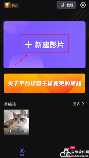 2、点击上方新建影片
