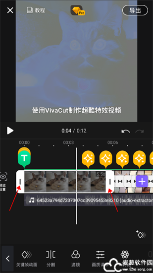 4、拖动如箭头所示即可实现视频的剪辑