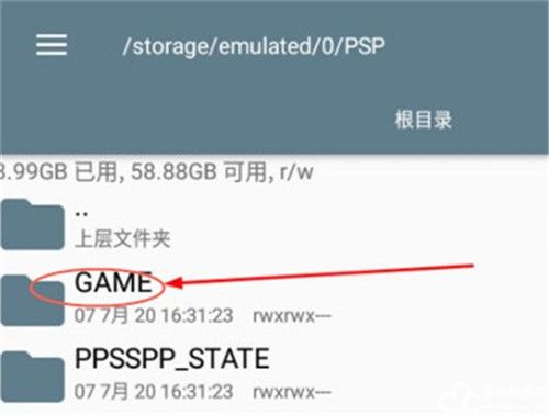 1、首先你要确定你的ISO格式的游戏文件存储在手机中的哪个目录中,正常情况下,ppsspp模拟器安卓版会在你的手机目录中生成一个PSP文件夹,然后你可以将游戏文件放入到PSP目录中的Game文件夹
