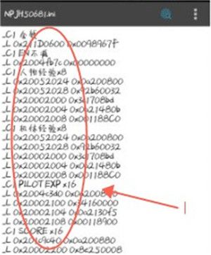 2、然后进入游戏中,按手机上的返回键弹出模拟器中的菜单,点击右边的【金手指】之后在手机上自动生成金手指文件,文件位置在PSP/Cheats文件夹中,里面有个ini文件,输入从网络上找来的金手指指令