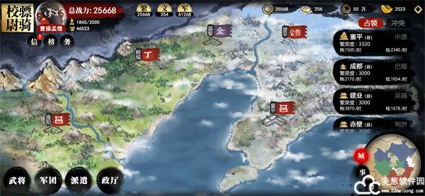 2、攻城之路。从第一波斥候开始,编组一定要对应好对方的队形,一直到城下,对方的队形基本是定型的。可用兵种相克,不能克则用同种兵。不用担心安排上的低级将没啥用,因为一路下来,等你打到城下之时,等级基本跟上了。因为你根本没有那么多的偏将去一个个额外升级。只要每攻打一城就换一下编组就行,不需要次次编次次组。