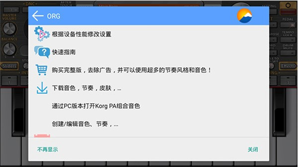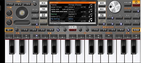 12、仿真模拟KORG电脑键盘与:褪色、同歩、键盘设置、节奏感、迁移、八度、均衡、调节、瓦解、和旋记忆力、点一下速率/重设…