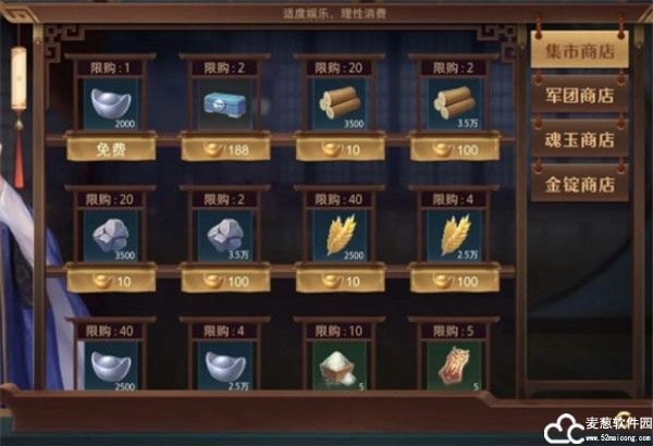 市场的另外一个作用则是四种商店。这个和右上角的商店图标功能是一样的,点哪个进入都可以哦。