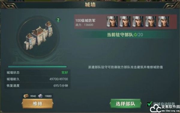 点击城墙建筑还可以派部队进行守城哦,主公可以在睡前将部队驻防在城墙,不给敌军可趁之机。