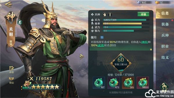 3星技能效果:对直线敌军造成180%的物理伤害,自身进入【神兵】和100%【武圣】状态2回合。
