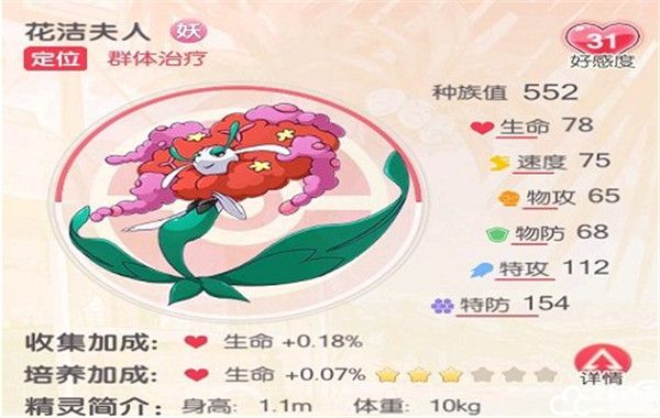 群体治疗,唯一的S级奶妈,在给对手造成伤害时,同时也会提升自身的治疗率,攻击敌方单排目标,治疗友方前排特攻的生命值,在友方受到暴击的时候也会恢复特攻的生命值。花洁夫人碎片获取比较稳定,而且还是持续输出。