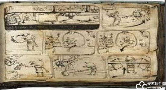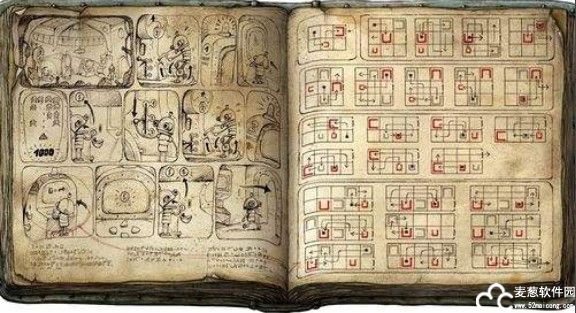 抓到猫就能去解决第三个乐队机器人的麻烦了,把猫放进去,老鼠就跑出来了,乐队又是一番演奏,楼上的大妈这次把收音机给摔下来了。拿起收音机,再一次来到广场,画面下方正中间有个摇杆,把它拿出来,插到钟楼下面的洞里面,可以转动时针了.照墙上的提示把红色指针指向VII,把黑色指针指向∽符号,这时候门就开了,大妈进了门,可以看到大妈背后的纸片了,再照提示把指针指向6和VI,大妈出来了,对面的大叔从那边跑过来进了门,我们就溜上去拿到类似喇叭的道具,可以和收音机组合起来.再来到轮椅大叔面前,拉开下水道的盖子下去.下到下水道里,走到右边,桌子里有本工作手册.手册可以翻页,最后一页里面藏着一把扳手,那一排的管道也有一把扳手和一个铁钩子,下楼梯来,出水口处用铁钩子又可勾到一把扳手,拿到三个扳手回到管道处,要把管道的出水口关住,让水不再流。这时广场上的水已经停了,下到下水道里把组合好的收音机放在桌子上插上电,然后点一下扳手机器人,就可以把水箱里的水放掉了,再上到广场去,跳进空了的水箱里,就到了一个新地方。