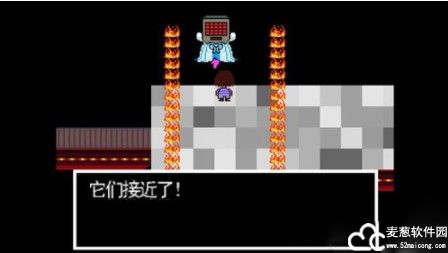这时候你被迫走上了那个脸papyrus都记不清步骤的色板上,你是肯定走不出去的,所以站在原地等待两边的火墙靠近即可,alphys博士会在紧急情况下将它们关停。