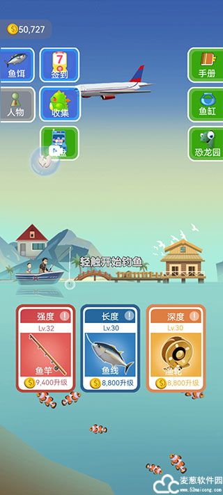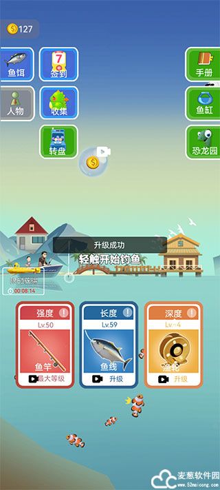 6、另外,玩家们还可以将自己的钓鱼工具升级,让它的强度、长度、深度得到一个更高的层次。