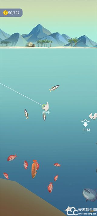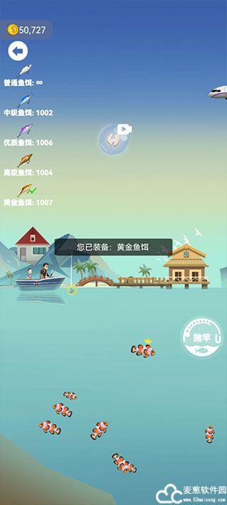 3、钓鱼的方式就像平时我们在生活中一样,抛出鱼竿即可