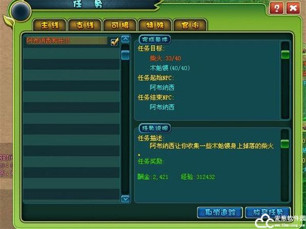 当前任务界面提示玩家正在承接的任务、以及任务的完成状态。点击任务条目,可以查看任务的详细信息;为节约屏幕资源,任务系统可以所谓一条。