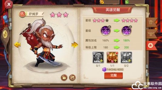 英雄觉醒:6星以上的英雄可以进行觉醒,觉醒会提升英雄的星级并且让英雄的属性和技能大幅度提升