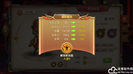 英雄进阶:当英雄达到一定等级后,可以给英雄进阶,进阶提升英雄的属性并且让英雄的技能变得更强