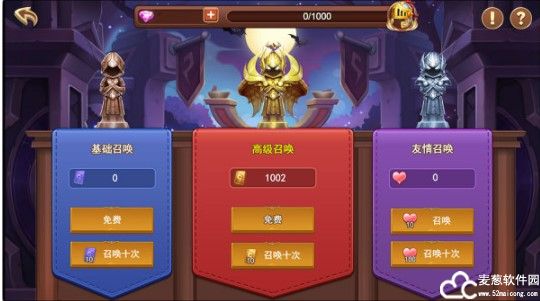 ①召唤法阵:在这里你可以消耗钻石或者召唤卷,就有机会获得强大的英雄,相信你的运气,成为欧皇不是梦想