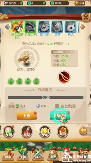 宠物的升级:我们可以使用宠物升级丹以及银两对宠物进行升级提升战斗力。