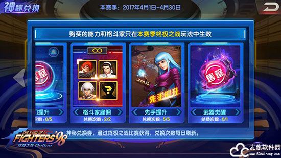 4、神秘商店只有开赛阶段才能够购买,优先级最高的是武器觉醒,每天一次,每周三次,一个赛季下来只能有12名格斗家拥有觉醒状态,要有选择的购买。神秘商店开门一定要配合购买武器来使用,不然买到6门没买武器,依然出不来终极大招。