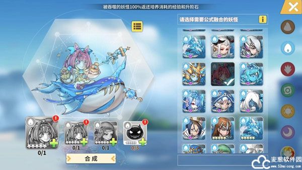 公式:选择1个你想要融合的主体妖怪,再放入指定条件的材料妖怪,即可生成你想要的妖怪啦!融合生成的主体妖怪会继承她之前的等级、阶级、装备。而消耗的材料妖股也会部分返还之前培养的材料。(所以呀,再次提醒一下,分解3星、4星妖怪要谨慎哟)