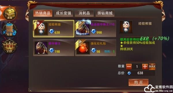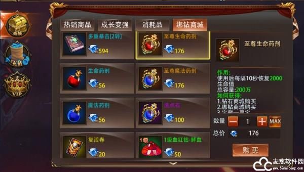 除了这些必备道具外,商城还会出售一些游戏中的稀缺道具,在装备强化,技能强化中尤为重要。