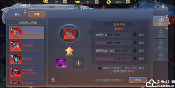 对了!装备洗练的时候如果已经洗出了极品属性别忘了加上锁,免得好不容易洗出来的极品属性被洗没了就真的是欲哭无泪了!