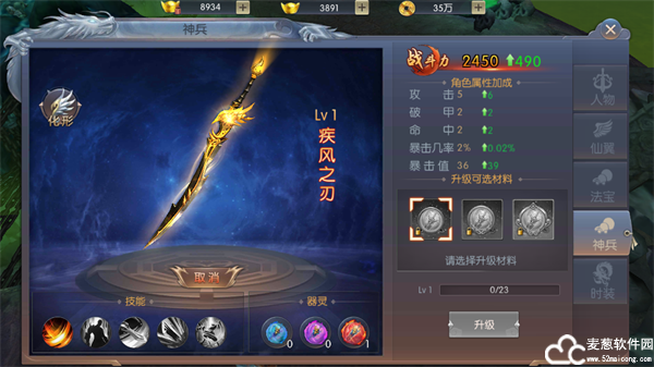 正所谓神兵在手天下我有,不过一把好神兵需要用心去打磨培养,神兵培养起来后能提升高额的属性加成和战斗力,还能根据等级解锁强力的技能。