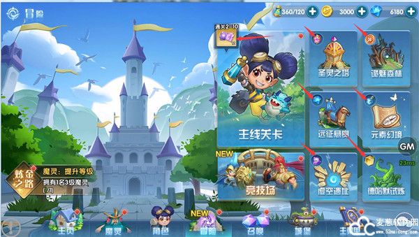 2、第二天随着主线推进战力要求的增加,开始以提升魔灵,获得魔灵为主。