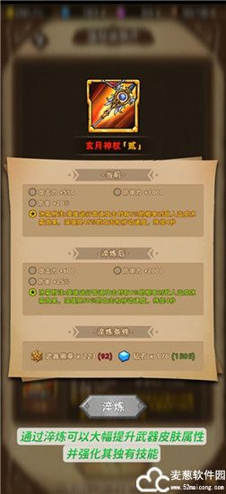 淬炼是针对绝世神兵武器皮肤的强化系统,在我们获得绝世神兵等级的武器皮肤后,可以花费武器结晶(幻武召唤获取重复的武器皮肤时自动转化,亦可通过许愿池抽奖或购买礼包获得)和蓝钻对其进行淬炼,淬炼后武器皮肤的属性加成将会大幅增加,并且武器皮肤携带的独有技能也会被强化。