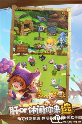 在爬塔过程中,你可以拯救各种身怀绝技的精灵,为了报答你的救命之恩,他们除了为你战斗,还会回到你的家园牧场,为你努力打工,离线收集各种资源,金币、碎片、素材等等等等都不在话下!去收集更多的精灵,让他们成为你打怪赚钱的好帮手。