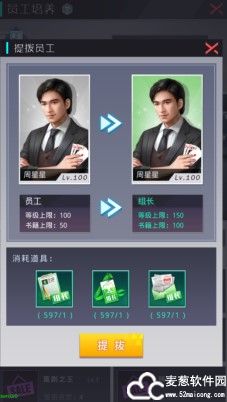 2、员工资质:可以使用书籍提高员工的资质,在资源有限的情况下,小编也是建议玩家可以先提升等级高的员工。