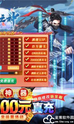 1、上线福利:上线即送满级VIP,百万仙玉GM扶持礼包,GM专属神装一套