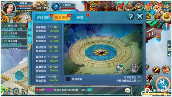 祝福好友和接受祝福都可以获得一定的经验和真气,等级越高获得的经验和真气也就越高。每天最多可以祝福好友20次,接受50次好友祝福。