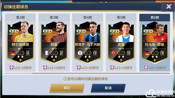 4、传奇币可兑换的球员每两个月都会增加一名,玩家可以选择兑换最新的球员碎片,也可以选择兑换以前的球员,目前可兑换的球员共有6位,他们是:马奎尔、特尔施特根、特奥、劳塔罗马丁内斯、武磊以及托马斯穆勒。(以上奖励以游戏实际版本为准)