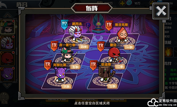 ?游戏的布阵分为2排3列,可以根据自己的喜好进行排兵布阵。在这里要说下,主角是不能被更换下场的。也就是说,主角是必须被培养的。