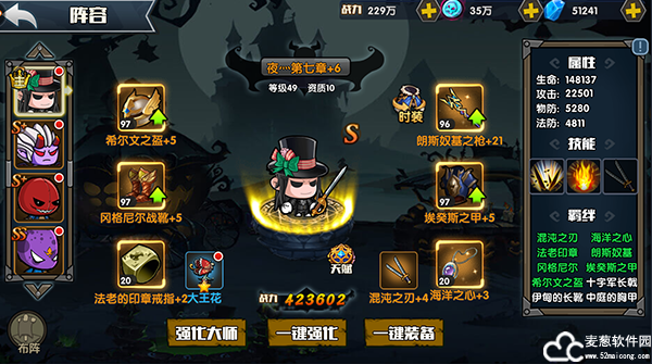 另外,在阵容的界面,只有选择了主角,才会有”时装“,对的,主角有皮肤额。而且可以强化提升属性,在这里就不扩展开了。以后有机会再进行详细说明,对于”阵容“的基本说明小编今天就写到这里了。希望对大家有所帮助。